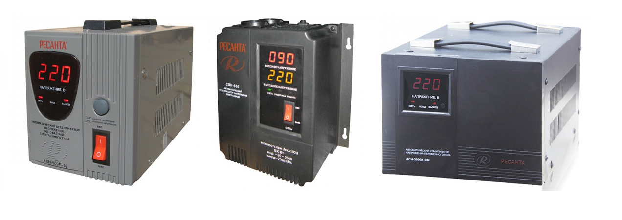 - стабилизаторы напряжения — бытовые, инверторные, цифровые, электромеханические и электронные, одно- и трехфазные;